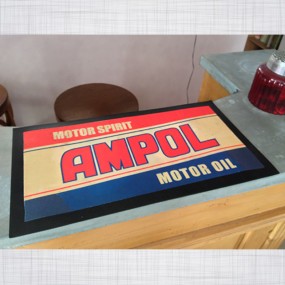 Tapis de comptoir AMPOL Motor Oil. En caoutchouc noir antidérapant, surface imprimée en polyester lavable. Idéal pour la décoration de votre bar, comptoir, table, plan de travail...